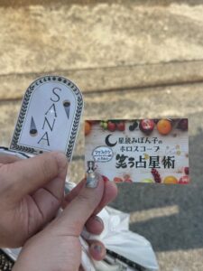 宮島お朔日参りを何十年も主宰されている手相の師匠がおられるのですが、8月に私が参加した時に、聞いてみれば良いなぁと思ったんです。なのに人見知りを発揮させ、まだ先だしなぁなんて言い訳をつけて話せなかったんです。「ばかばか!私のバカ!あの時聞いておけばよかったじゃん!」って思いつつ、DMを送るのも説明が難しいなぁと思っていたところ、なんとなんと!!秋分の日に私が出展したイベントに、ふらりと現れたんです!!