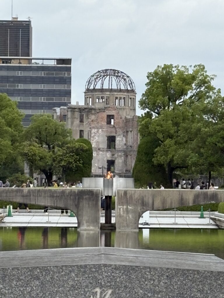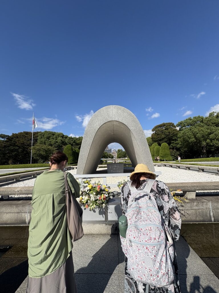 私を「推し」だと言ってくれるメグミさんと、オンラインでよく話していたので初めてと感じなかったレンキさん。終始楽しい時間でした。レストハウスに「むさし」のお弁当を持って入ってランチし、慰霊碑に手を合わせ、原爆記念館に入りました。