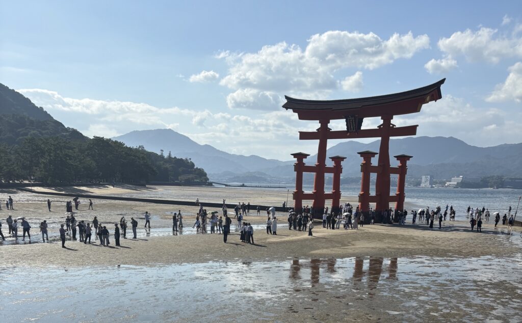 今回の宮島の醍醐味は満ち潮と引き潮の厳島神社、鳥居を両方体験できたこと。私も同日に見るのは初めてでした。kumi姉さんは宮島は3度目?4度目?だけど海に浮かぶ厳島神社を参拝できたのは初めてとおっしゃっていたので、貴重な体験だったようです。お昼前に参拝し、ゆっくりとしたランチの後、引き潮で鳥居の下まで歩いて行くができました。さなさんとゆうこちゃんは、裸足で海に入り、神様とのグランディングをしていました。ゆうこちゃんの素敵なリール動画ができていましたし、さなさんもVlogをアップされるそうなので楽しみです。